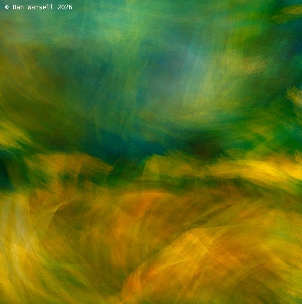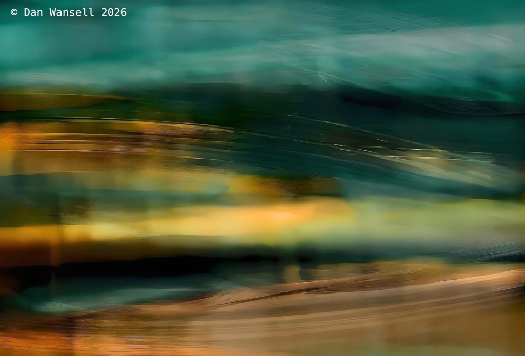 I created this piece by layering transparent sections of abstract photographs to build a landscape filled with energy and flow. The process allowed light, texture, and colour to overlap, suggesting movement through the scene. Each layer contributes to a sense of shifting space, like watching the land change through a moving window. The final effect captures both the stillness and motion found in nature.