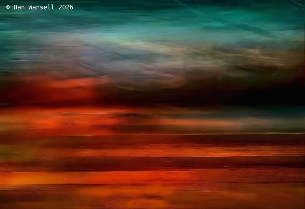 I created this landscape by layering abstract photographs of light, capturing soft blurs and vivid colour shifts. Using digital tools, I overlaid the images and adjusted their transparency to build a sense of space and motion. The warm reds and deep blues formed naturally through the process, suggesting a glowing horizon at dusk. I enjoyed how the blending of light alone could evoke the mood of a landscape without any defined forms.